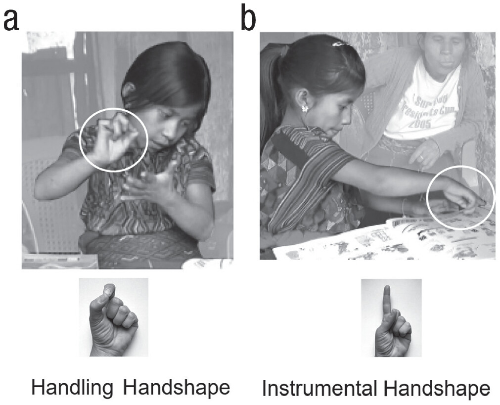 另一方面,当描述工具的独立图像时,听力正常的参与者使用工具导向动词并不能预测失聪儿童使用工具符号。Rissman和同事们写道,这表明这些发现是针对人类如何描述工具使用事件的普遍限制,而不是一般的工具。