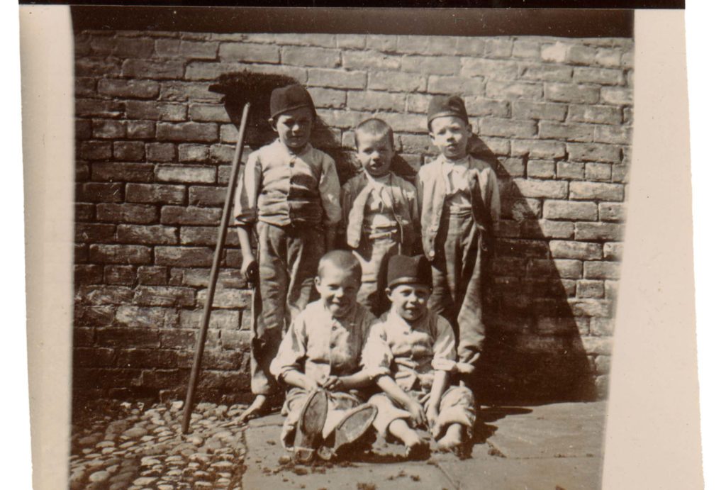 复古照片从维多利亚时代晚期/爱德华七世时期的早期显示在街上一群可怜的孩子在英国,通过盖蒂图片社。
