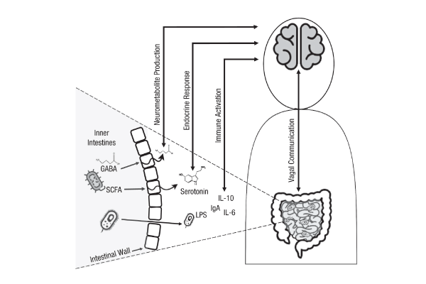 近年来,对人类和动物的研究,其中一些使用了神经成像,增加了肠道微生物群组成与大脑过程之间联系的证据。例如,某些肠道细菌的缺乏与精神疾病有关,从焦虑和抑郁到注意力缺陷/多动障碍(ADHD)和自闭症谱系障碍(ASD)。研究还揭示了微生物群中的细菌与性格特征之间的联系。将某些种类的细菌引入体内已被证明可以减轻压力的不利影响,甚至可以减轻疾病症状。例如,2018年的一项研究表明,生酮饮食可以通过增加某些细菌(Akkermansia muciniphila和Parabacteroides merdae),减少海马中与癫痫相关活动相关的氨基酸的数量或代谢(Olson等人,2018)。