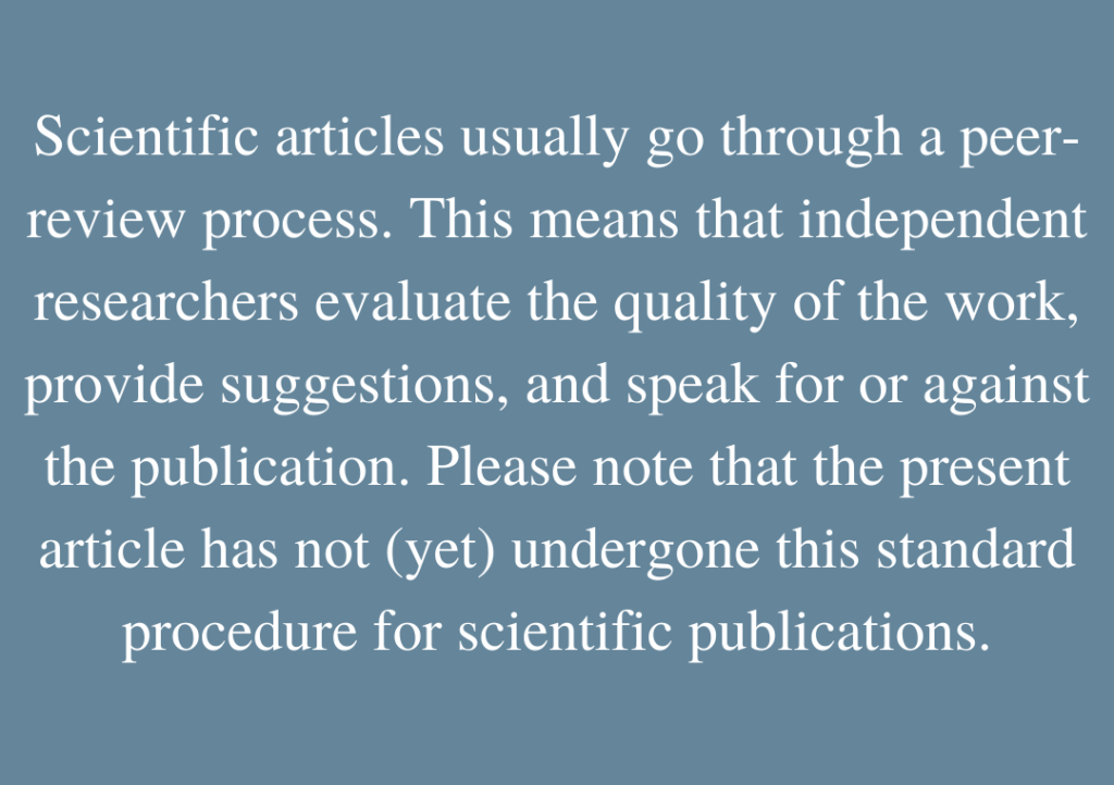 在第五项研究中,温根和同事进一步测试了预印本附带信息的来源是否会影响其在非科学家中的可信度。研究人员金宝搏官网登录给出了一个简短的解释(见图1),并指出这个信息是由预印本的作者提供的还是由外部来源提供的。结果表明,不管解释的来源是什么,参与者都认为预印本中的发现比同行评议文章中的发现更不可信。令人惊讶的是,当预印本只附带一个声明说预印本未经同行评议时,同样的效果也出现了。